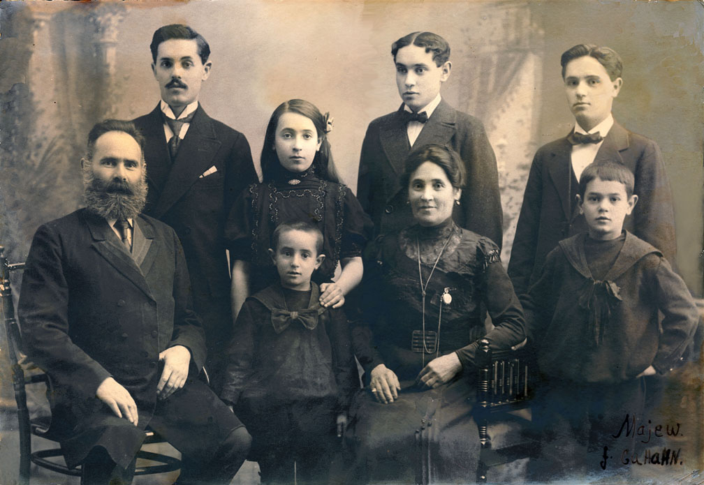 Back row from left to right: Oscar, died 1953; Lise, died 1928; Chaim (Kaj), died ( 1940s in Sweden during the war); Schloima (Shchlomo), died 1973 Bottom row from left to right: Leizer, died 1930; Peter died 1963; Scheine, died 1947, Max, died 1982
